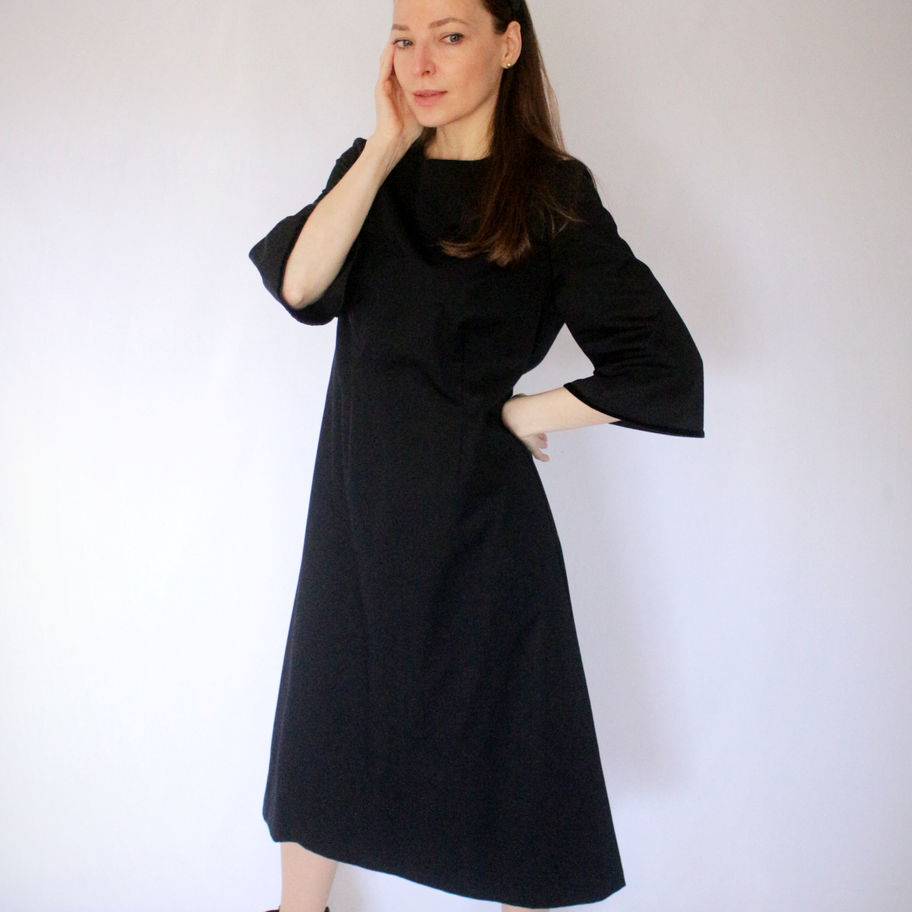 Semi-fitted midi dress with wide sleeves and velvet ribbons
